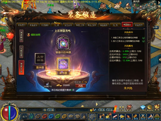 1、主装备需要装备一个有三条及以上相同属性的神器
