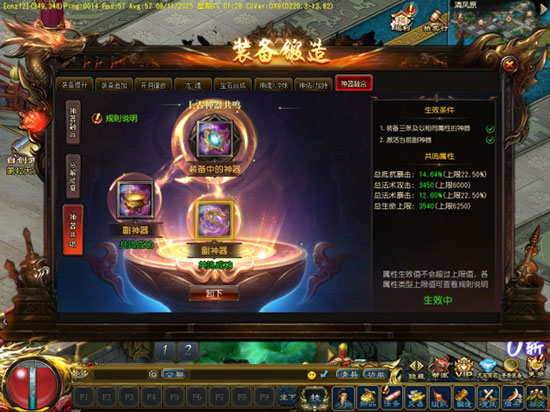 2、在副神器位放入一个有三条及以上相同属性的神器