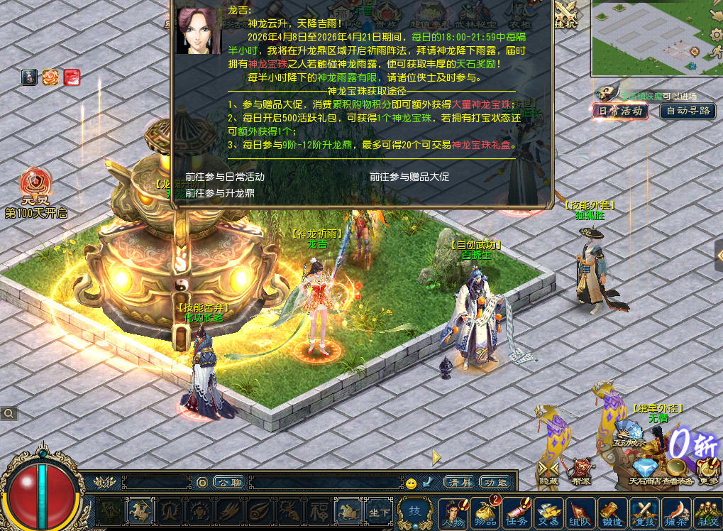 注:每半小时降下的神龙雨露有限,请诸位侠士及时参与!