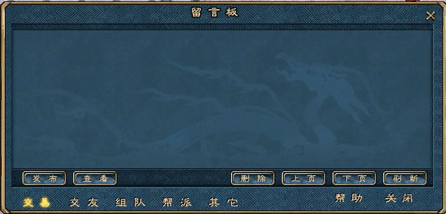 留言系统有五个频道:交易、交友、组队、帮派、其它。从字面上就可以了解这些频道的功能了。