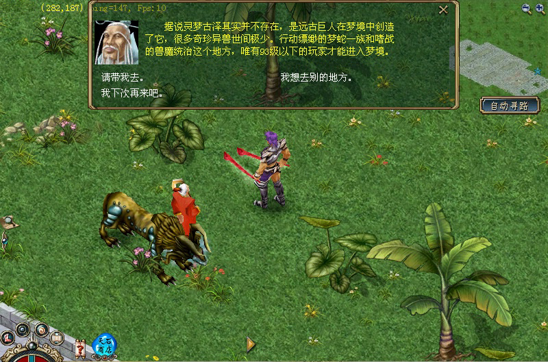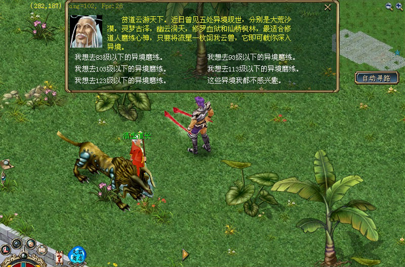 3.道长对话后会弹出一个选择框,然后选择适合自身等级的练级区.就会马上带你去相应的练级区了.