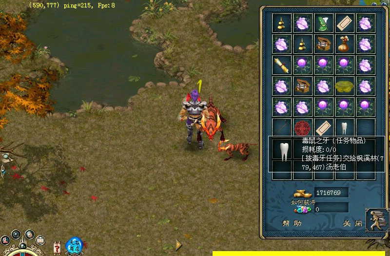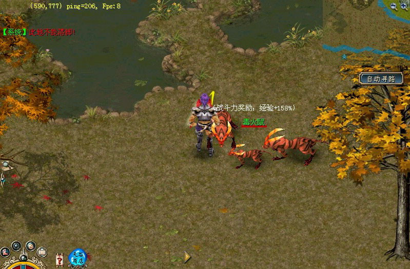 2. 刻不容缓地赶到枫溪林寻找毒火鼠的踪迹,经过几番激烈撕杀,终于得到了“毒鼠之牙”。