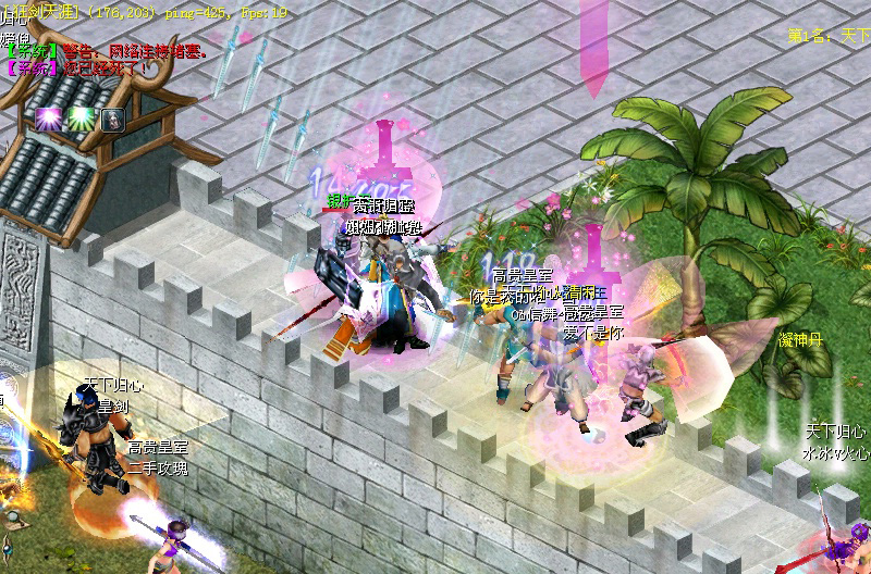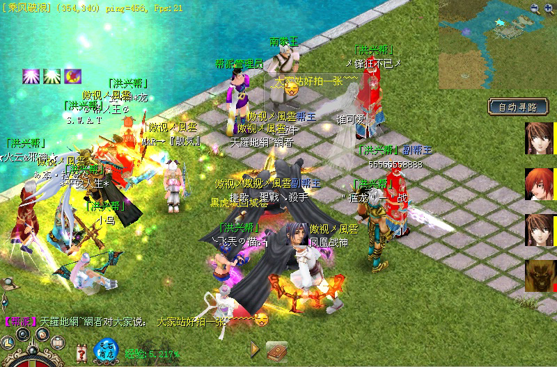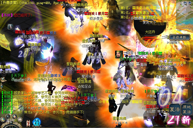 1. 帮派战斗是与双龙城城内左侧NPC帮派管理员(350,337)对话后进去,非战斗时间,任何人不可以攻击帮派柱。(帮派地图不变) 2. 争夺战开始时,进入帮派总坛攻打帮派地图上的帮派柱,如果帮派柱被彻底打毁,将由对帮派柱伤害最高的帮派方占领。 3. 帮派柱的耐久度以彩色血条显示,有很高的魔防,需要战士和勇士来做主力。攻击门柱100%命中率。 4. 只有帮主可以设置修复:鼠标点击帮派柱的时候,跳出一个窗口,问该玩家是不是要用帮派基金给帮派柱修复。修复是自动的,每10秒恢复1万的血,一直到帮派柱血满了,或者帮派基金没有钱了才停止。花一两修10的帮派柱血。 5. 各个帮派在战斗时间内,系统将会记录各个帮派对帮派柱的伤害。如果帮派柱被打垮,则帮派易手,伤害最高的一个帮派获得帮派地图的拥有权。 6. 打帮派柱可以得到一定的金钱;攻击对方帮派柱能够获得一定的报酬,但是如果对方帮派资金为0则无法获得。 7. 如果帮派资金变为0,那么帮派柱将会遭受到10倍的伤害。 8. 从其他帮派手中抢得总坛,将会获得对方10%帮派资金的赔款。 9. 帮派易手后,帮派柱及帮派城门重置,所有战绩清零,原先帮派的雕像不会消失,需要你来拆除。 10. 如果仍然在帮派争夺时间内,其它门派可以继续展开争夺,已占领总坛的帮派人员则必须守住帮派柱,直到帮派争夺时间结束为止。 11. 在帮派争夺战中,所有进入帮派总坛的人员在被攻击死亡时,如果是水道士使用复活术复活,则可以原地复活;不复活的话,鬼魂则会留在帮派地图上,既可观看大战,又可等待水道士来复活!如果是自己手动复活,将不再传送回双龙城出生地,而是被传入另一块地图上——帮战监狱。 p.s:在帮派监狱地图中的玩家可以实际的时间每隔半小时通过npc出去,其余时间玩家无法出此地图。 |