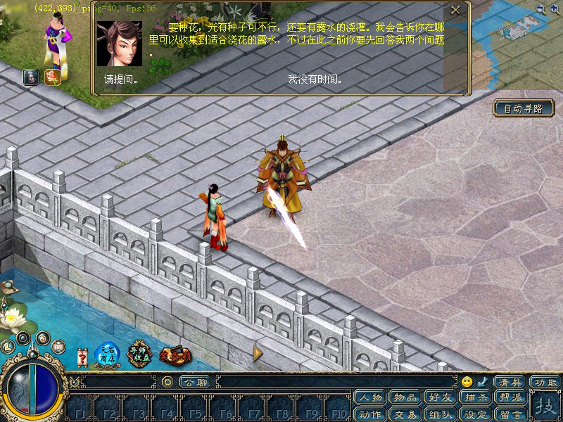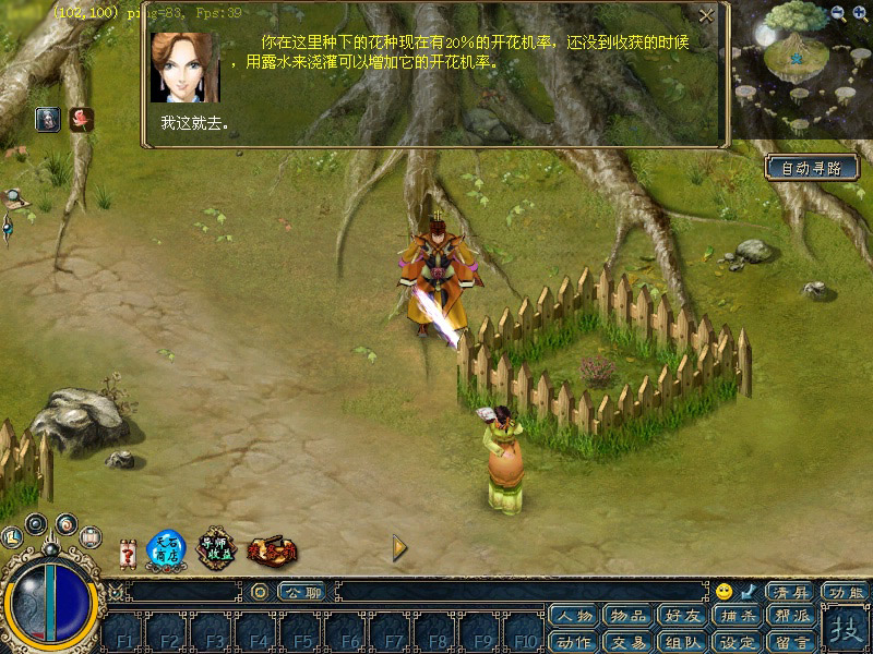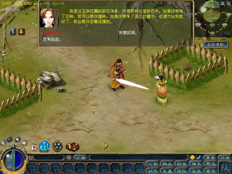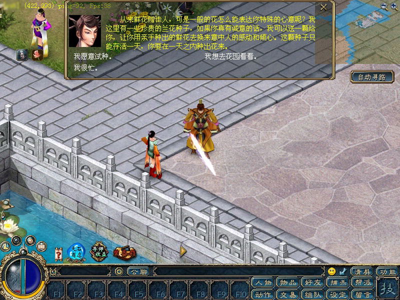 1、每日可以到双龙城的兰蕙花神(422,396)处领取一个新鲜的兰花种子,并由兰蕙花神传送到幽兰花园择地种下。