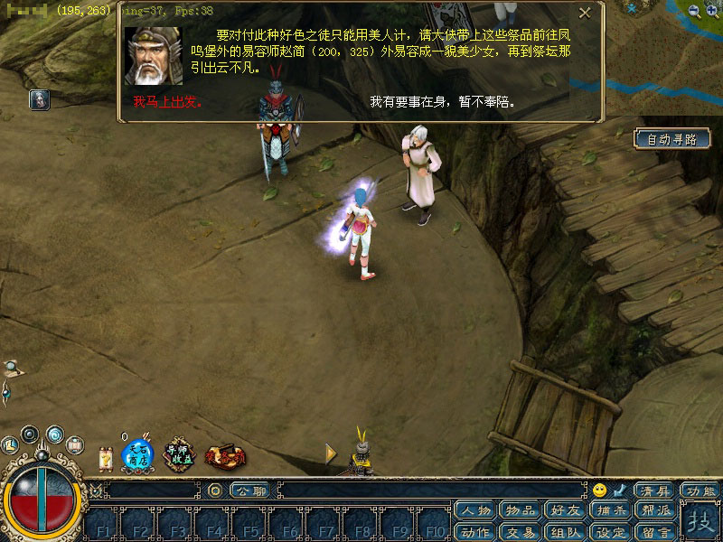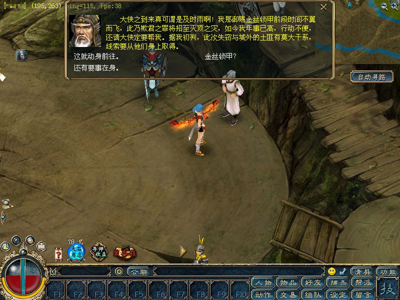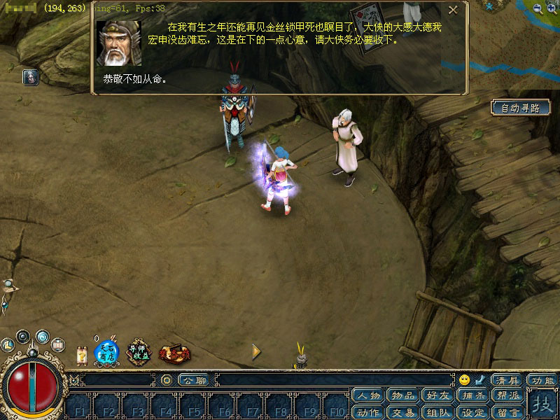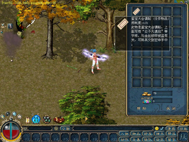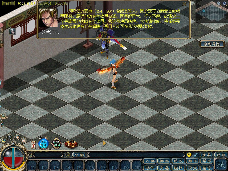 鸣凤堡的宏申曾经是军人,因护驾有功而受金丝锁甲赐身。最近他的金丝锁甲被盗,因年纪已大,行走不便,故请求一个英雄帮他找回金丝锁甲。这次是表现你英雄气概的最好时机。 来到宏申面前,你一定会被他当年的丰功伟绩所震撼。不过年事已高的他,请求你帮他寻找丢失的金丝锁甲。首先,他要你从城外的土匪那收集线索。 果然不出宏申所料,你在城外的土匪那得到了鉴宝大会请帖,右键点击便看查看其中的内容,此信非常重要,快将其交给宏申。 得知金丝锁甲是被云不凡盗去,宏申立刻心生一计——美人计,他要求你带着祭祀物品到鸣凤堡的易容师•赵简化妆成一女性引出云不凡。此计果然独到,你不妨试试。 来到鸣凤堡的易容师•赵简这,说明来由后他便立刻将你易容成一艳女,现在你可到带着祭祀物品到小祭坛附近(100,430)处用美人计引出云不凡。 来到小祭坛附近(100,430)使用祭祀物品后,云不凡果然中计,他一声他一声令下,与埋伏在附近的土匪一起挥刀向你杀来,要小心。 打败云不凡后便可得到一个宝盒,金丝锁甲竟然藏在里面,快将此甲交还给宏申。 金丝锁甲又物归原主,宏申对你赞叹不已。这次你不但可得到了一块究极历练牌,还可到大量经验和金钱噢! 得到究极历练牌的你快到训练师那换取奖励吧,这是又你的历练的一次成功! |