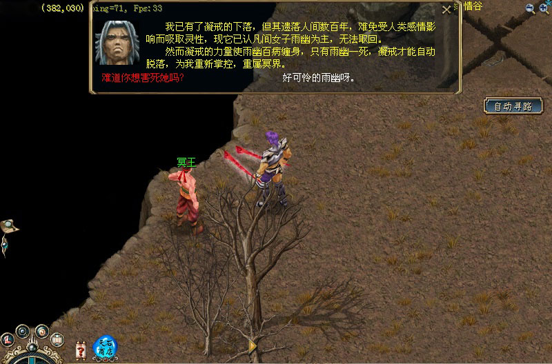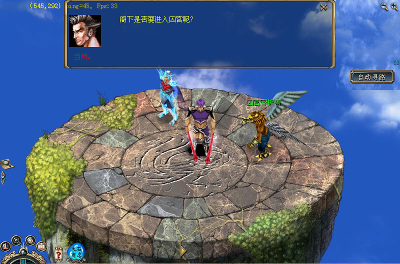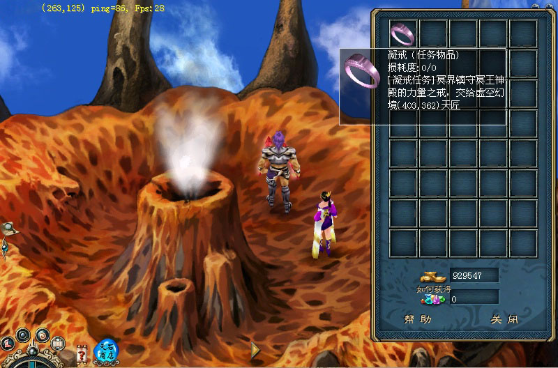 1、 在昆仑幻境遇到了天匠 (403,362),他告诉你,“开天五宝”之一——由冥界掌管的“凝戒”遗失了,如果你决定帮助天界寻回“凝戒”,天匠将给你一道天匠手谕。 2、 带上天匠手谕,在绝情谷找到了冥王(381,33)。他告知:凝戒现认人间女子“雨幽”为主,终生相随;而雨幽现被天界的天尊掳走,并囚禁在昆仑紫云宫深处,只有天匠的力量封印,才能将雨幽救回,。冥王修书一封,助你说服天匠,将力量封印相借。你若答应帮忙,得到“冥王的信”。 3、 返回虚空幻境,将冥王的信交给天匠,天匠将力量封印交给你,助你救回雨幽,取回凝戒。 4、 天尊(67,65)每晚7:00-9:00到昆仑顶练气修行,带着力量封印去,找到了他。他给你一张青天关挑战书,要你拿到青天关第二关的过关证明,才肯把囚宫通行令给你。 5、 带着青天关挑战书,在青天关中找到丹青子(155,165)挑战青天关,进入第三关时,向九天鹰魔索要第二关的过关证明,然后回到昆仑顶把过关证明交给天尊,他终于把囚宫通行令交给了你。 6、 有了囚宫通行令,去找昆仑幻境中的广法真人(245,235)进入昆仑迷宫找到囚宫守护兽,它放你进入囚宫,经过一番努力后终于见到雨幽(266,126),用天匠的力量封印解救了她,也拿到了 “凝戒”。 7、 最后回到昆仑幻境,将凝戒交给天匠,他会给你一件好装备,有可能是一个带品的戒指,或是一个带品的手镯。 | ||