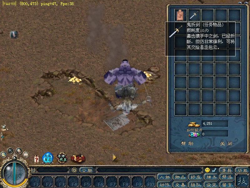 黑龙城原本是个太平的地方,可城外的猴子突然暴走,伤人众多,这些暴猴非武艺高强者才能制伏,并且此次猴子暴走定有蹊跷,为此县丞•包云只得求助江湖侠士前去帮其解决,这正是你崭露头角的时候。 包云是个爱民如子的好官,正为猴子暴走而发愁,快去帮助他解决此事吧,你也可先在这里了解当地猴子的情况。 从城外这些暴走的猴子掉落的腐化心脏,便可知此事非同小可,快将腐化心脏交给包云看看。 得到些腐化心脏的包云,心里更加复杂。他也看不出缘由,故要你带着腐化心脏去双龙城寻找李太医帮助解决此事。 李太医不愧为名医,接到腐化心脏,即刻看出端倪,很快就引出心脏之毒,并制成毒药。他要求你变成为猴子来检验此药的药性,以找到对症之法。 你变成一只巨猴后立刻使用此药,疯狂地撕咬着,突然眼前一亮,发现已现身另一世界中,并胡乱厮杀,但并没有什么杀伤力。 神志清醒后,李太医要求你带上毒药前往黑色毒雾(800 ,470)处,到达目的地附近使用毒药会引出毒齿猿。消灭几只毒齿猿后将会引出毒齿猿首领,除掉齿猿首领后便可得到鬼折剑。这个行动都需你单独完成,因为毒齿猿首领疑心很重,若你带着伙伴前去,他定会让替身出现,这样将导致行动失败。 将鬼折剑交给包云吧,为了感谢你,他将会给你一块究极历练牌,这时你还可得到大量经验和金钱噢。 快将带着究极历练牌到训练师那换取奖励吧,这次你为百姓们除去一害,真是功不可没。 |