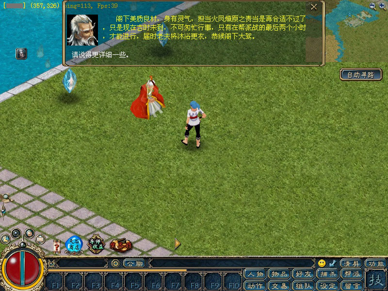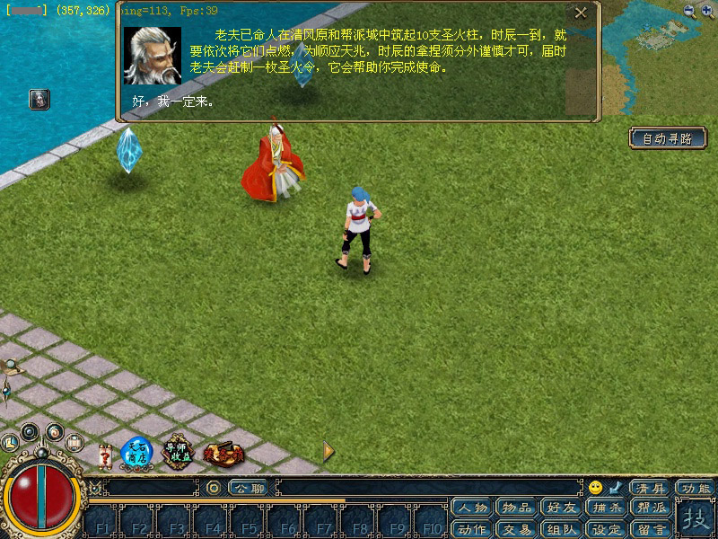 名字:天星子 作用:接任务NPC,奖励npc 地点:双龙城(353,325) |