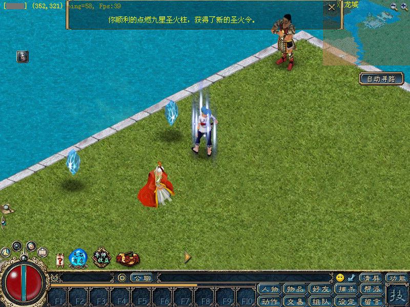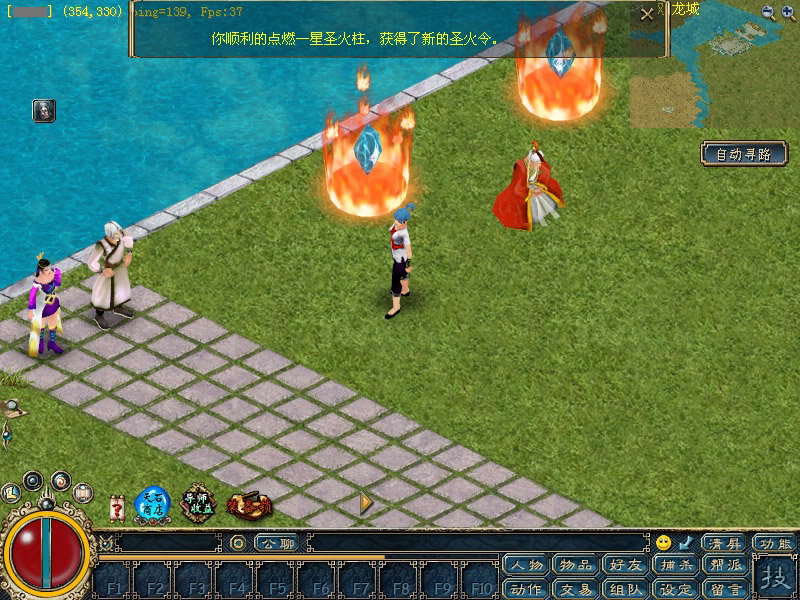 2、依次点燃双龙城和帮派战区域中的10支圣火柱,最后十星圣火柱只能在帮派战的最后半小时内点燃。
