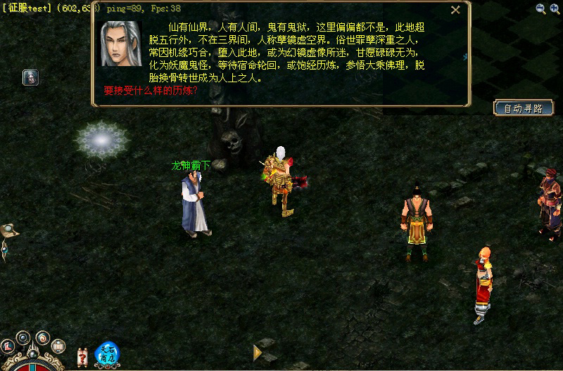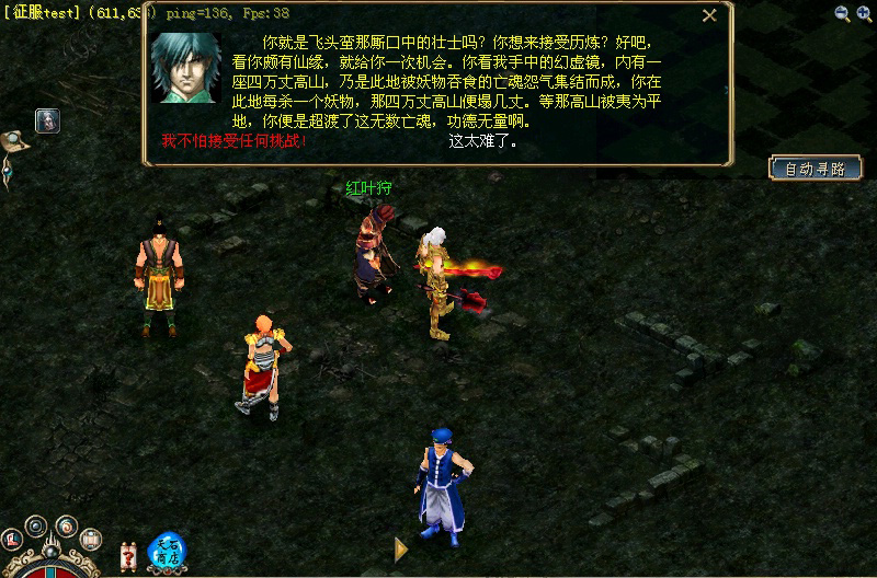 进入孽镜深渊之中,你可以看到几位幻界鬼仙。其中,龙神霸下会向你介绍这里的情况,蛇衔君会卖药品给你,而红叶狩、飞头蛮、烟夕罗将指引你接受历炼,积攒功德。 ![]()