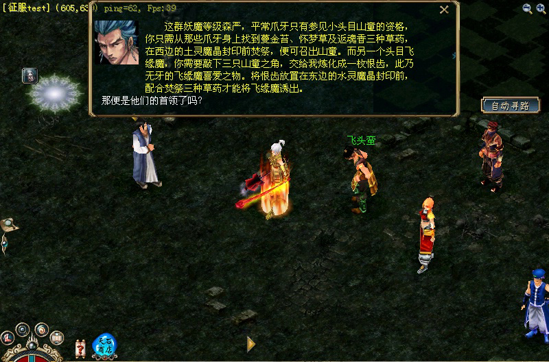首先,飞头蛮会给你第一阶段的考验。深渊中有大量的妖魔喽罗,它们的头目藏身在三块魔晶封印中。你可以从小怪身上打到蔓金苔、怀梦草及返魂香,这三样物品可以在地图的各个地方的怪物身上打到。它们就是小怪们召唤头目的物品。