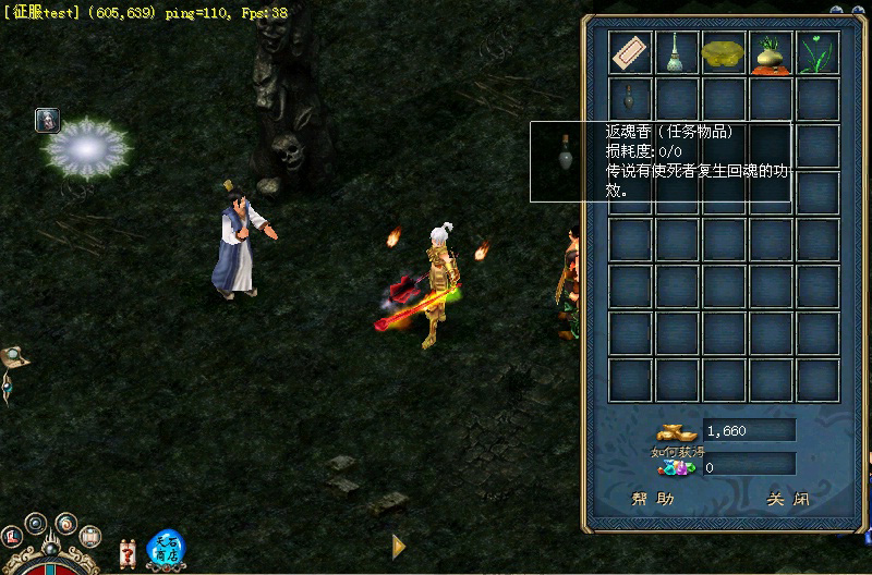 带上这三样物品到地图的左中部分找到水晶样子的土灵魔晶封印,就可以召出一只山童,杀死山童后可以得到一个鬼角。得到三个鬼角后,找飞头蛮将三个鬼角合成一个恨齿。拿一个恨齿,加上蔓金苔、怀梦草及返魂香四样物品,到地图的右中部分找到水灵魔晶封印,召出更厉害的头目飞缘魔,杀死飞缘魔后掉落一个羽砚石。