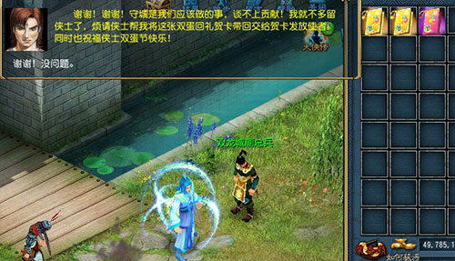 1、活动期间,条件达到的侠士可找贺卡发放使者对话领取任务,同时也可向她了解活动详情。 |
