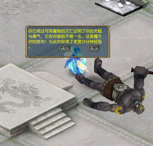你将甄站士说的话牢牢记下,向他道谢并表示现在你已经准备好,可以进入试炼塔了!甄站士用赞许的目光看了看你,便带你进入了一座巨大而古老的石塔中,对面正有一个可怕的怪物狠狠地瞪着你,这是巨魔,第1层的试练塔妖物,不过你又怎么会害怕这种只有强壮野蛮可取的家伙呢,只是略用了一点技巧,你就轻松击败了它,第1层的试炼塔奖励——30分钟经验也随之落入囊中。