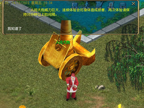 你在美娘娘处了解清楚人间大炮的作用,居然是可以把自己发射出去的神奇大炮!天啊,真不知道会不会被发射到火星上,虽然感觉好可怕,但你只觉得蠢蠢欲动。